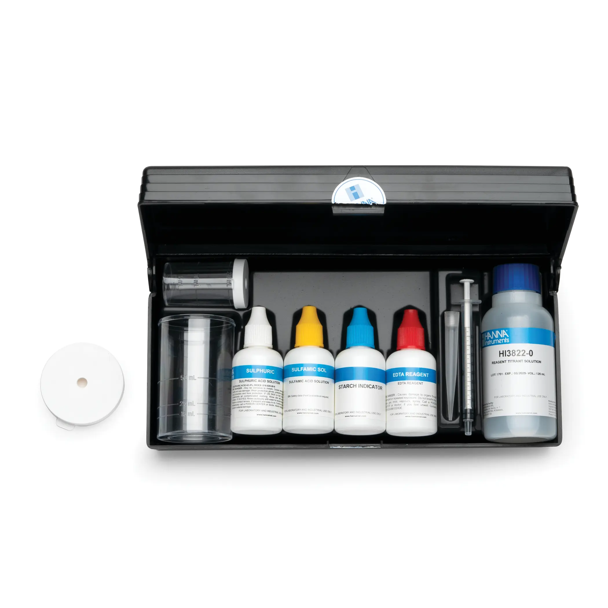 HI3822 cung cấp kèm thuốc thử cho 100 lần đo và đầy đủ phụ kiện như cốc nhựa, xilanh