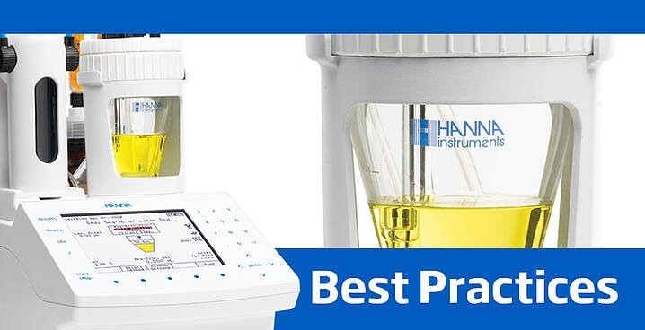 Chuẩn độ Karl Fischer (KF) được sử dụng để xác định độ ẩm và nếu bạn bắt đầu phép chuẩn độ bằng khoảng chuẩn độ bị ẩm, hoặc khoang chuẩn độ vẫn còn mẫu đo chưa được vệ sinh, sẽ dẫn đến kết quả chuẩn độ không ổn định và thiếu chính xác. Vài nguyên nhân ảnh hưởng đến khoang chuẩn độ bị ẩm, bao gồm tuổi thọ của hạt hút ẩm silica, vòng cao su chữ O, loại dung môi (luôn luôn sử dụng dung môi chuyên dụng cho chuẩn độ KF), loại mẫu được chuẩn độ và thời gian để khoang chứa khô hoàn toàn (30 phút giữa các lần sử dụng). Khi sử dụng thiết bị chuẩn độ Karl Fischer HI933 của Hanna, lỗi “error 72 code” (ngoài thang đo) sẽ hiện trên màn hình nếu trong khoang hiệu chuẩn vẫn còn ẩm và người dùng không nên đi đến bước “Pre – titration”. Để tránh tình trạng đó, người dùng chỉ cần sử dụng bơm chân không để làm sạch khoang chuẩn độ và thêm dung môi chuẩn độ mới vào (đến vạch thể tích tối thiểu), sau đó lắc nhẹ khoang chuẩn độ để dung môi phủ bề mặt khoang chứa. Nếu dung môi không chuyển màu vàng, người dùng có thể châm 1mL chất chuẩn độ bằng cách sử dụng menu tính năng của Buret. |