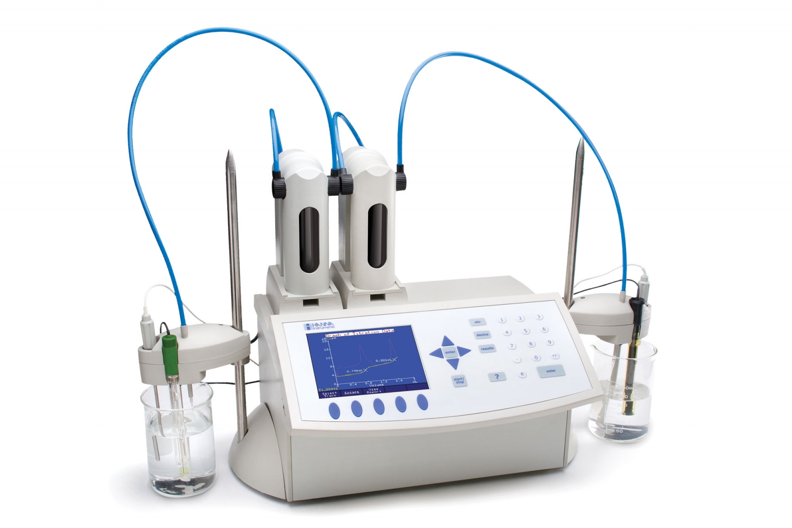 Hãy tìm hệ thống chuẩn độ có thể được thiết lập cho cả chuẩn độ muối và axit cùng một lúc. Điều này có nghĩa là thiết lập có thể được đặt tại chỗ mà không cần thay đổi hóa chất hoặc điện cực.