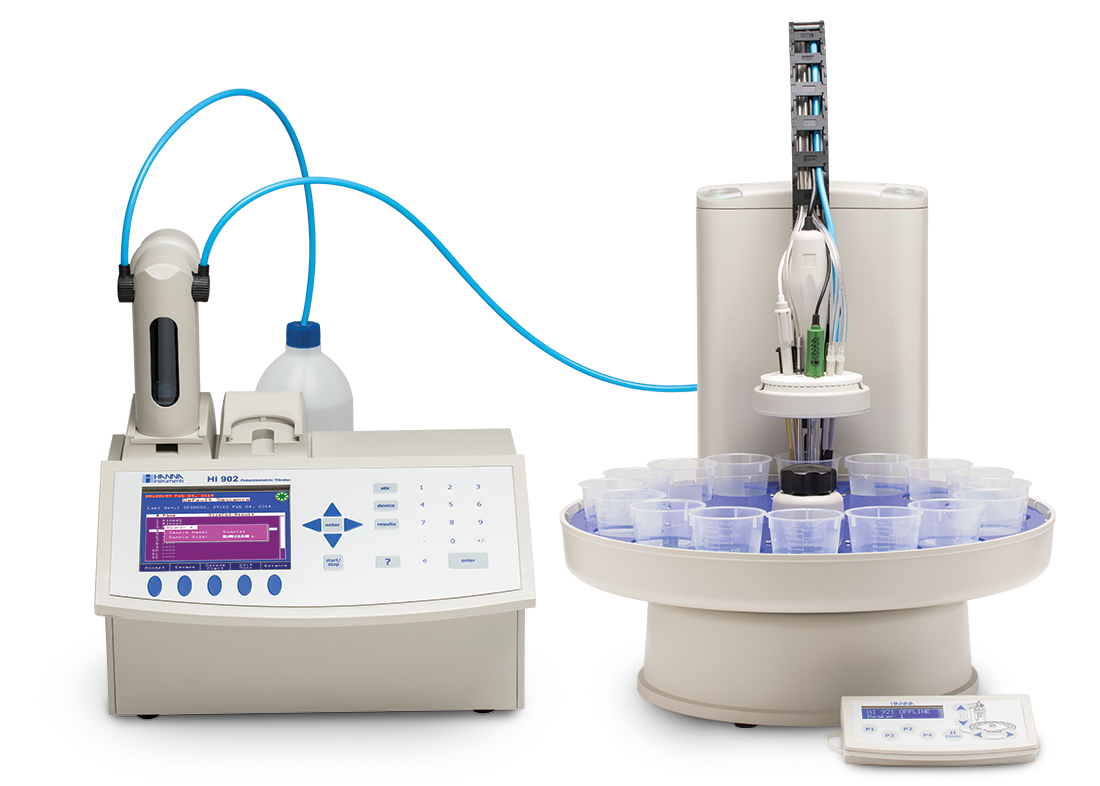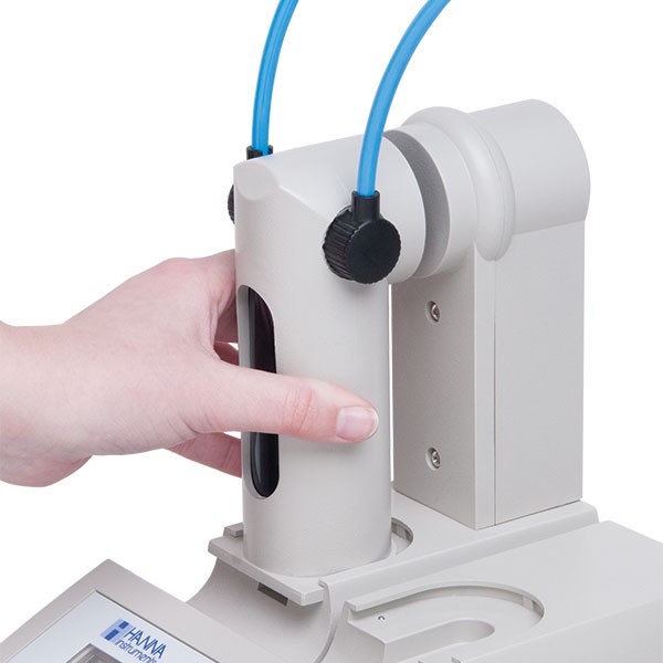Lưu ý từ Hanna: Bơm định lượng cho phép lượng chất chuẩn độ ban đầu lớn hơn và nhỏ dần khi gần điểm kết thúc. Điều này rất quan trọng vì nó cho phép chuẩn độ nhanh mà không làm quá tải ở điểm kết thúc. |