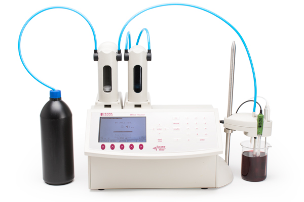 Máy chuẩn độ mini để đo độ axit trong rượu vang - HI84502 đo tổng độ axit có trong nho (nước ép nho). Một loại axit chính mà tất cả các nhà sản xuất rượu theo dõi trong mùa thu hoạch là axit tartaric. Việc sử dụng máy chuẩn độ mini HI84502 giúp xác định thời điểm thích hợp để hái nho.