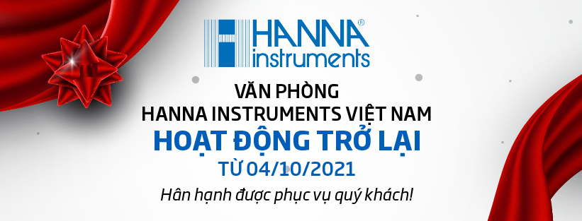 Hanna Instruments Việt Nam xin cám ơn quý khách hàng đã đồng hành cùng chúng tôi trong thời gian qua. Bắt đầu từ ngày 04/10/2021, Văn phòng Hanna Instruments Việt Nam vui mừng được phục vụ Quý khách hàng có nhu cầu mua hàng hoặc chăm sóc kĩ thuật đối với tất cả thiết bị.