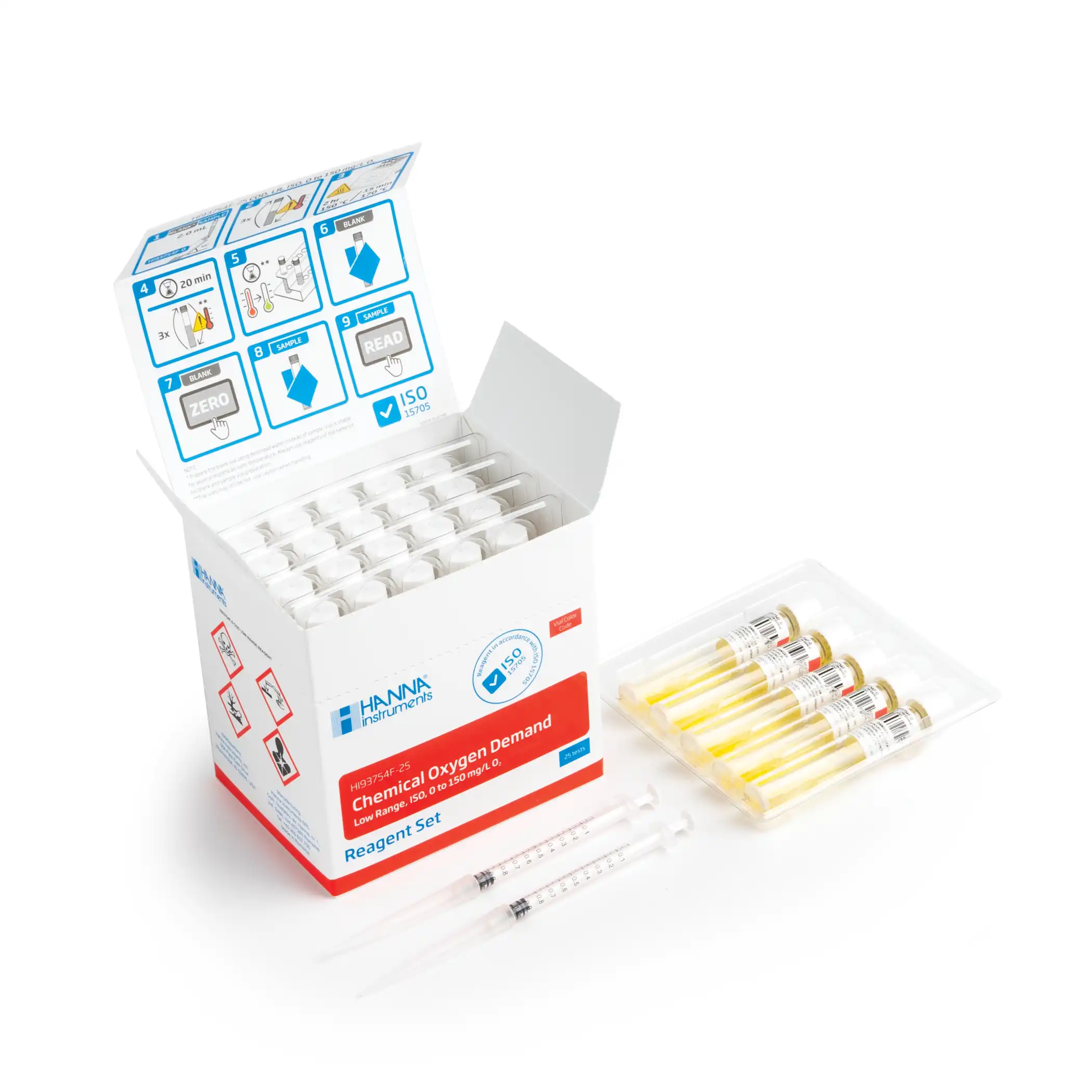 HI93754F-25 là thuốc thử đo COD (Chemical Oxygen Demand – Nhu cầu oxy hóa học) được thiết kế sẵn trong ống nghiệm 13 mm, giúp đơn giản hóa quá trình kiểm tra chất lượng nước trong phòng thí nghiệm và hiện trường. Với thiết kế tiện lợi, chính xác và an toàn, sản phẩm này lý tưởng cho các nhà máy xử lý nước thải, sản xuất công nghiệp, nông nghiệp và các ứng dụng nghiên cứu môi trường.