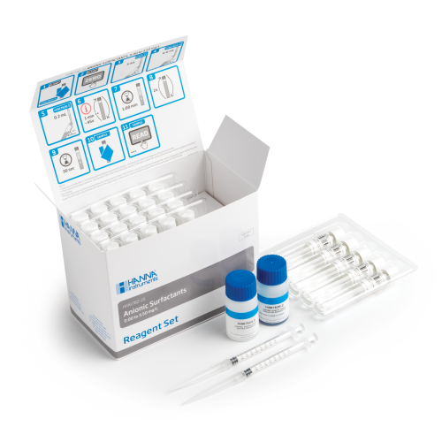 HI96782-25 là thuốc thử chất lượng cao, cho phép người dùng thực hiện các phép đo so màu nhanh và chính xác. Các thuốc thử này sử phương pháp Standard Methods for the Examination of Water and Wastewater, 23rd Edition, 5540C, Anionic Surfactants as MBAS. Xác định chất hoạt động bề mặt anion bằng phép đo chỉ số Methylene Blue Active Substances (MBAS). Chất hoạt động bề mặt anion phản ứng với Methylene xanh trong môi trường kiềm, phản ứng này tạo ra muối được chiết xuất bằng clorofom. Màu xanh lam của pha hữu cơ được xác định bằng phương pháp quang.